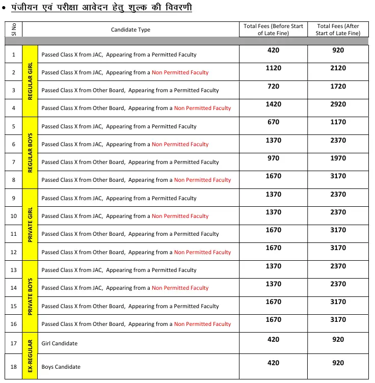 JAC Board Class 11th students, whether from Science, Commerce, Arts, or any other stream, will have to pay the registration fee as per the details of registration and examination fee given.
